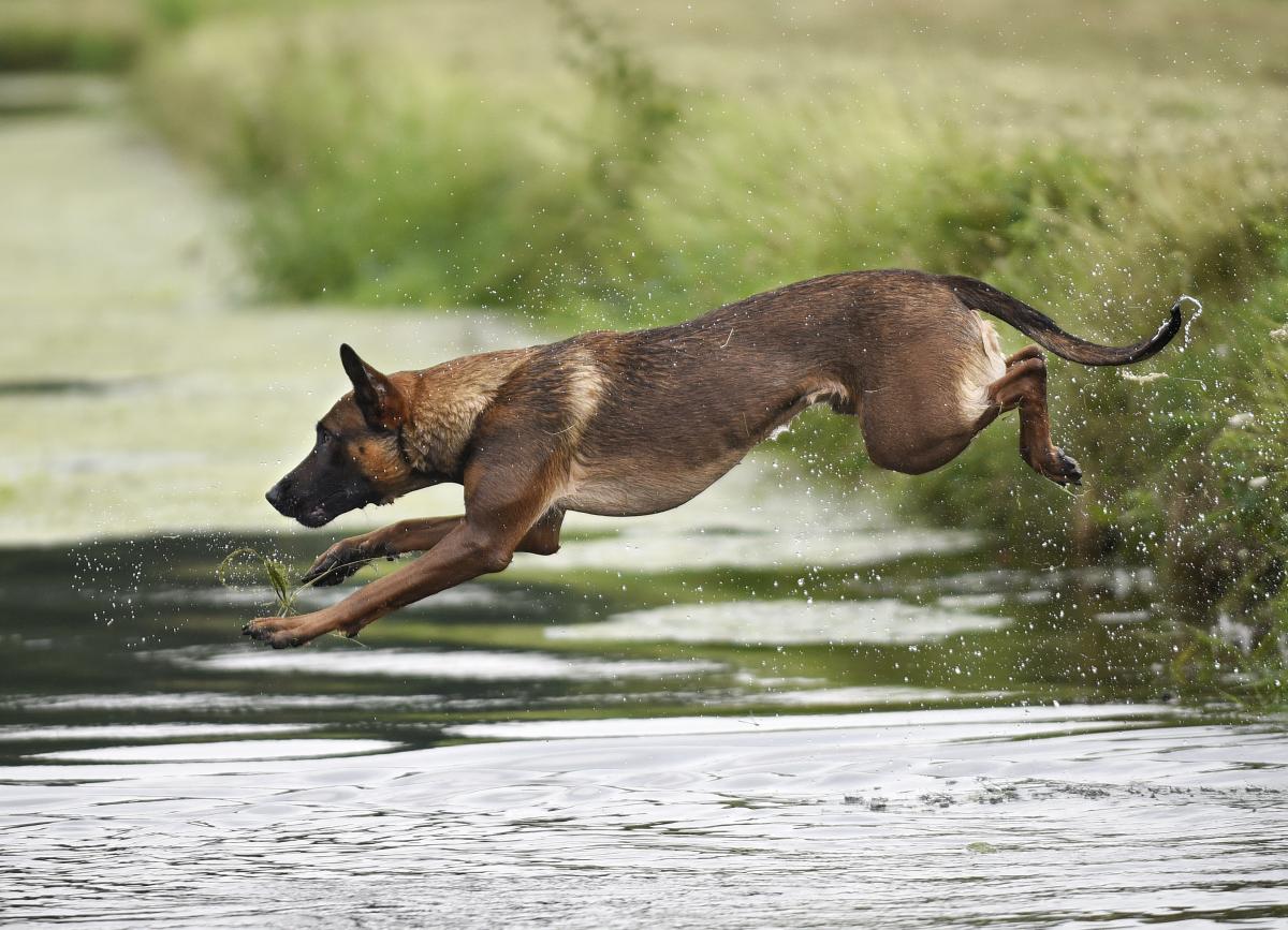 Zwemonderdeel van de politiehondenwedstrijd te Sint Oedenrode