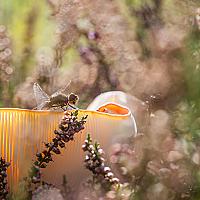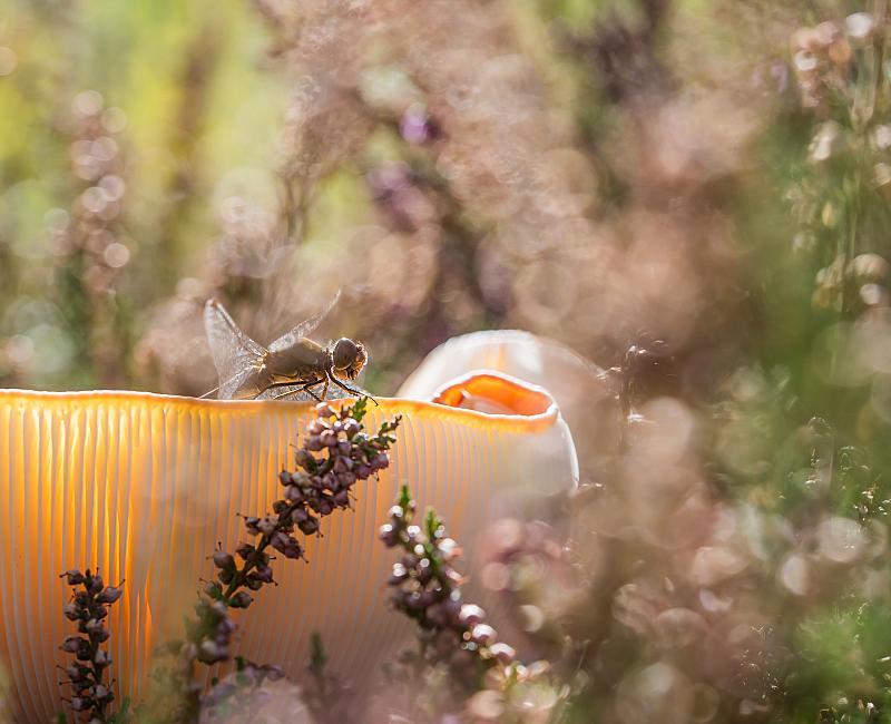 Op de grond liggend voor de vliegenzwam landde er een libel, precies in focus....was opzet denk ik