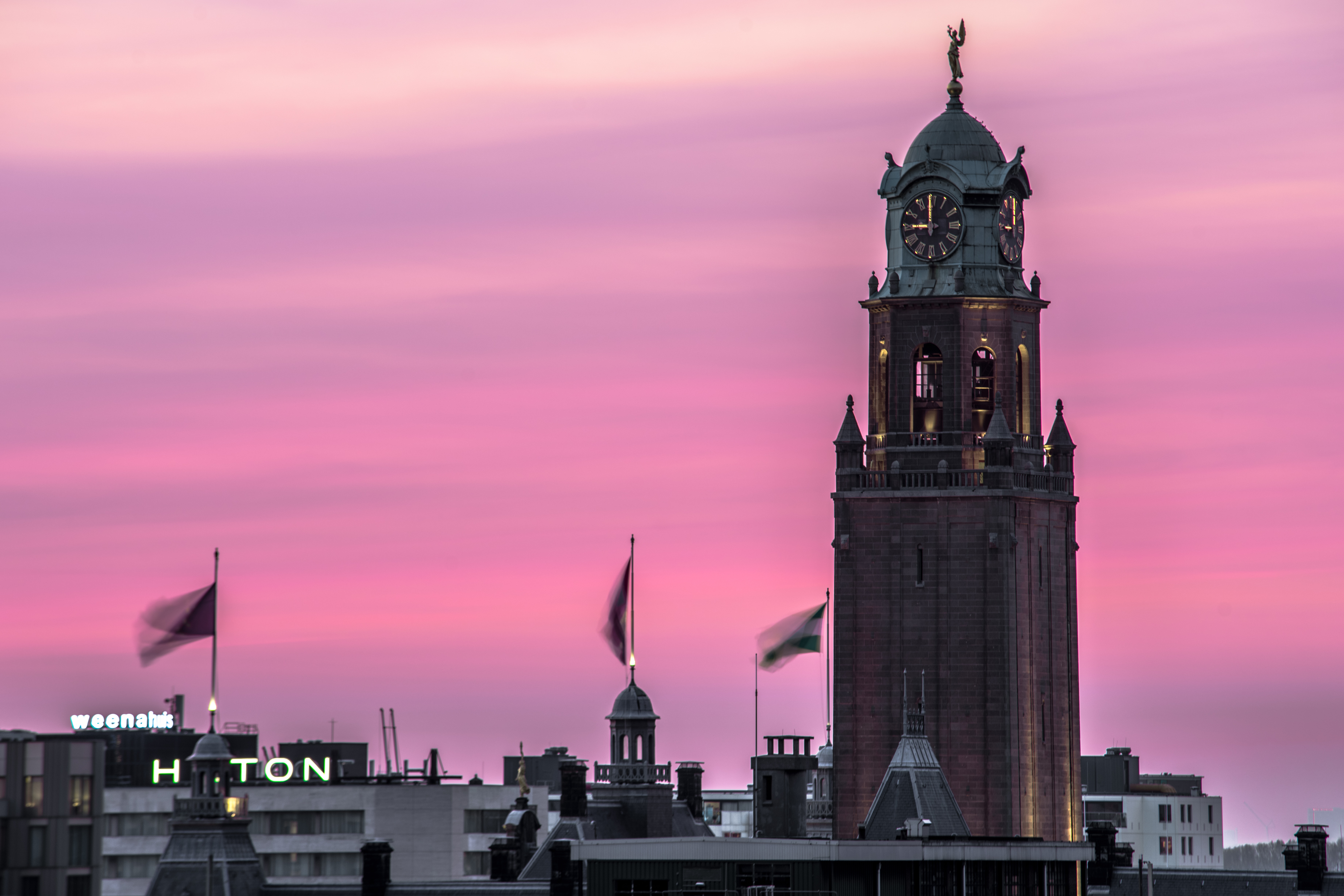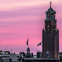 Stadhuis Rotterdam tijdens zonsondergang