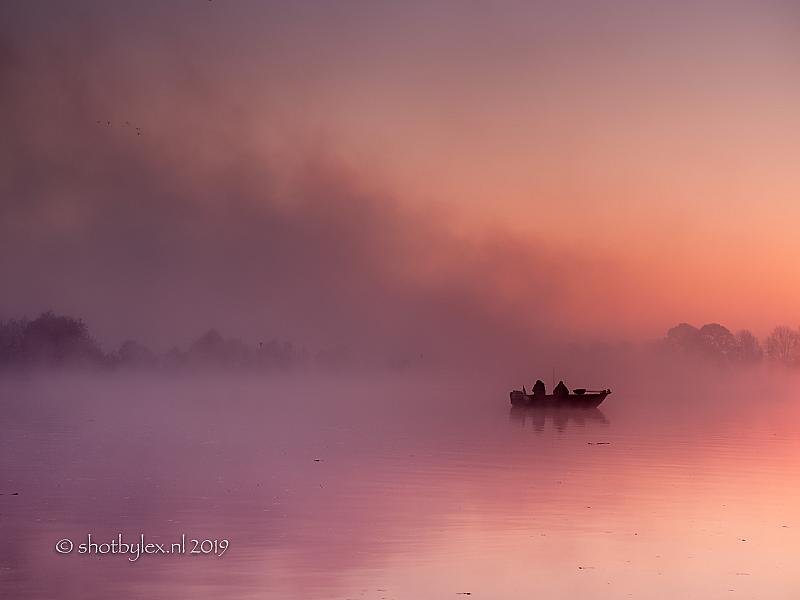 Prachtige, gekleurde zonsopkomst en mist, wat wil een mens nog meer?