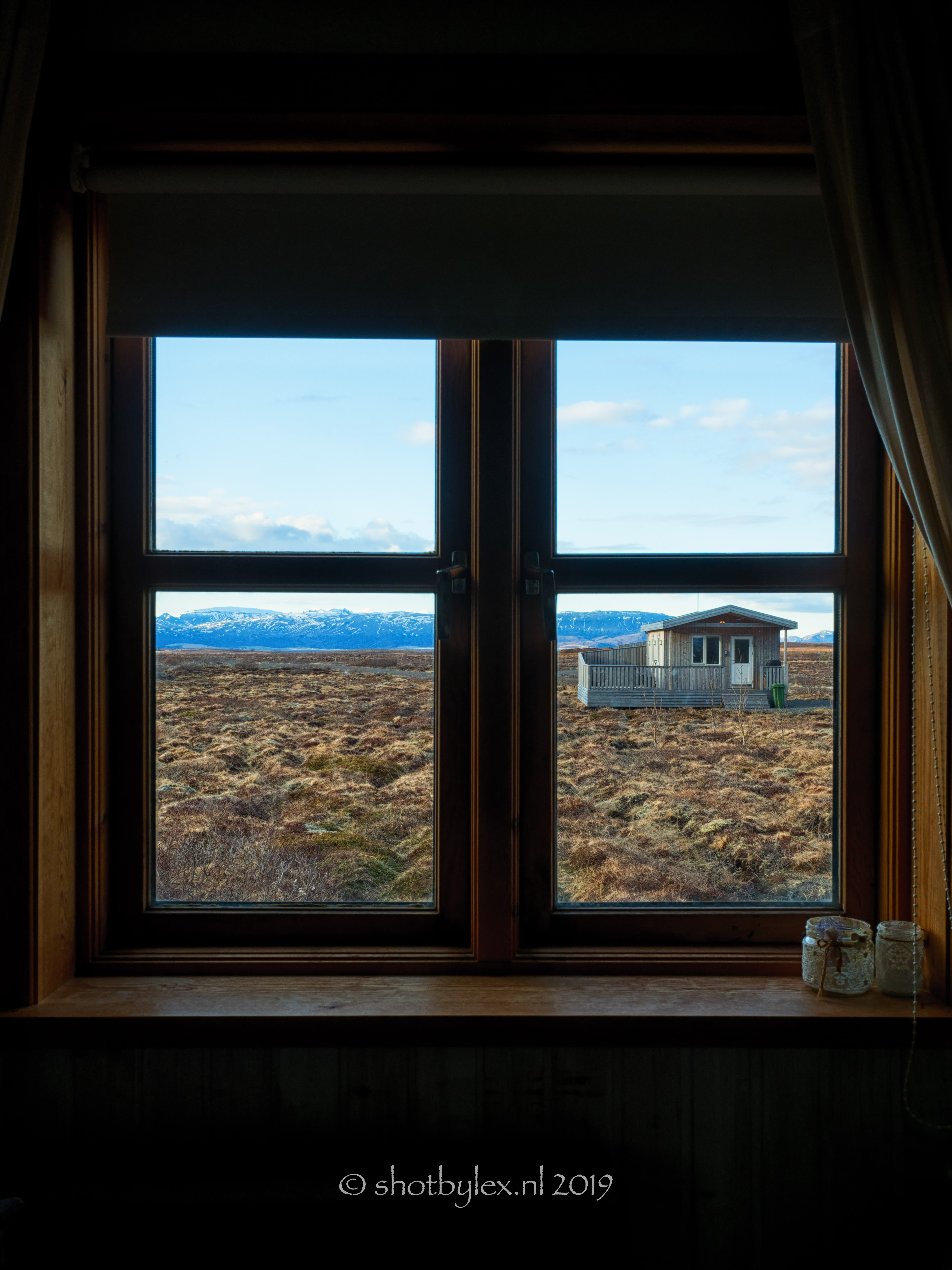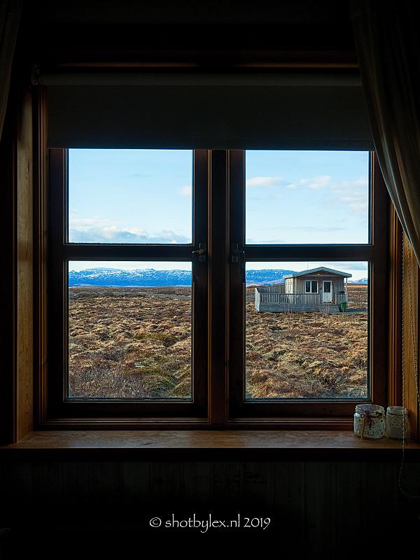 UItzicht vanuit een huisje aan de zuidkant van IJsland