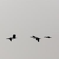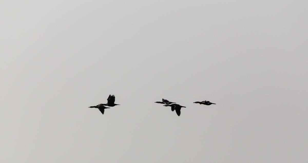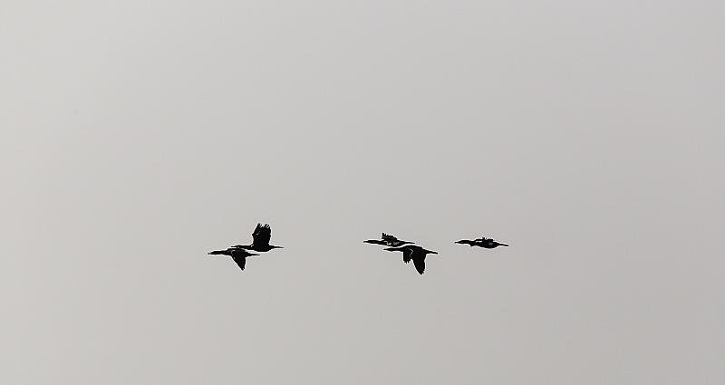 Aalscholvers op weg naar hun voedselgebied