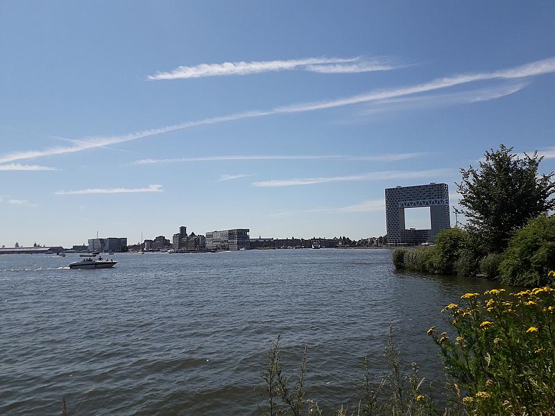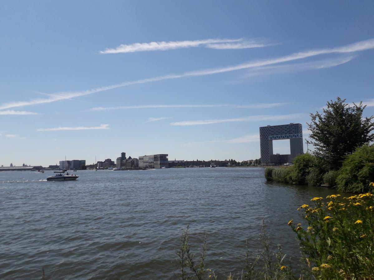 Prachtig uitzicht op architectuur bij en om het centraal station. De foto is genomen vanaf de overkant bij het ndsm terrein.