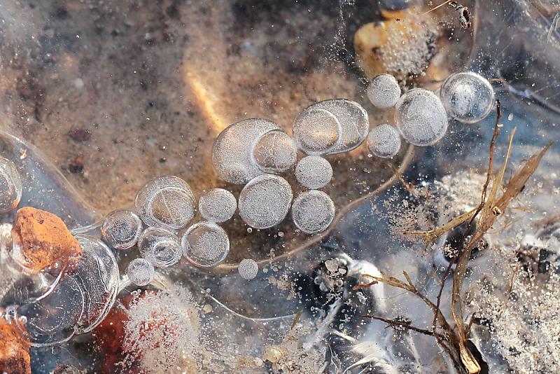 Een waterplas op de weg veranderd in ijs....