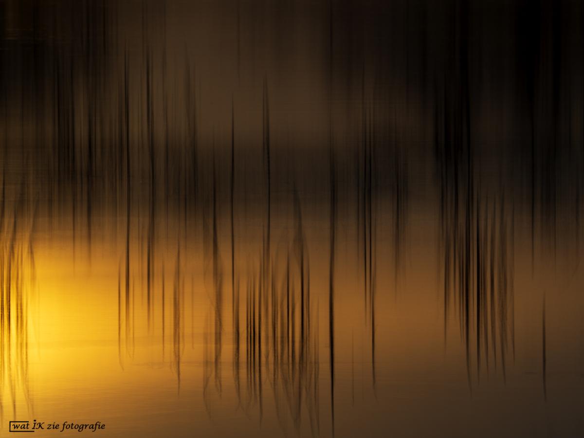 Zonsondergang aan het water, bij deze foto heb ik gebruik gemaakt van meerder technieken in een foto, waardoor een abstract beeld ontstond.