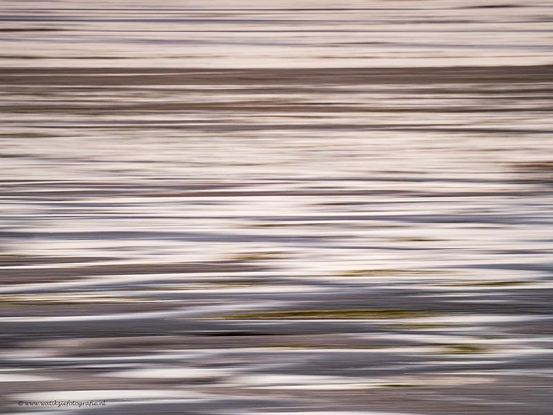 Door met de camera snel van links naar rechts te gaan, ontstaat er een abstract beeld, met alle kleuren die het wad op dat moment had.