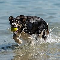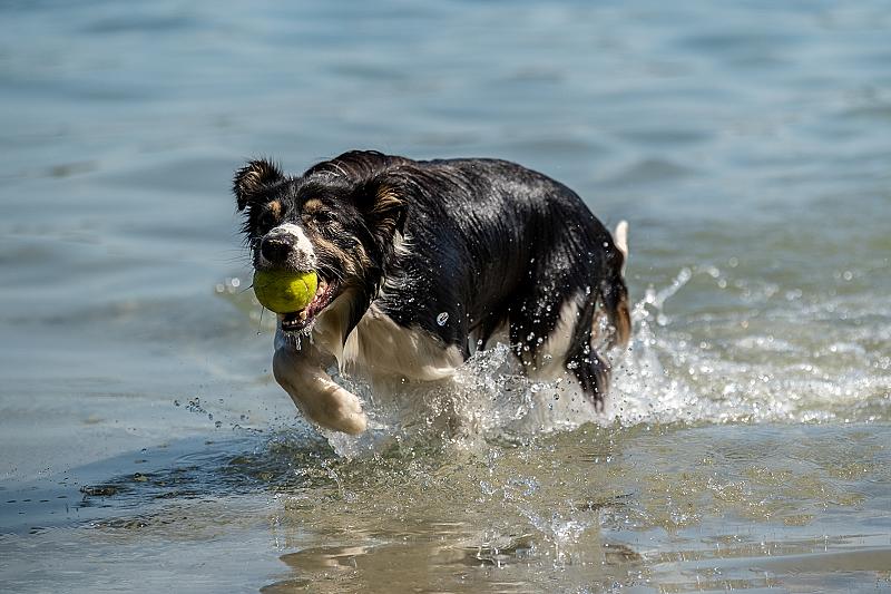 De border collie moet worden bezig gehouden, ook in de zomerhitte