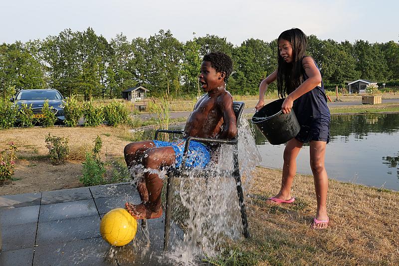 Het was 40 graden en dan is er niets lekkerder dan afkoelen met een plens water over je heen.