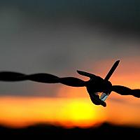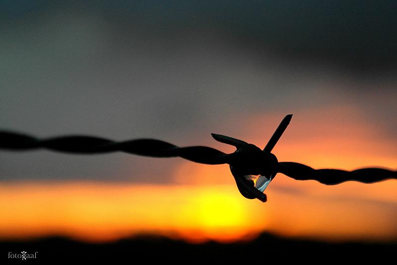 Dit regendruppeltje bleef hangen en weerspiegelt de felgekleurde lucht.
