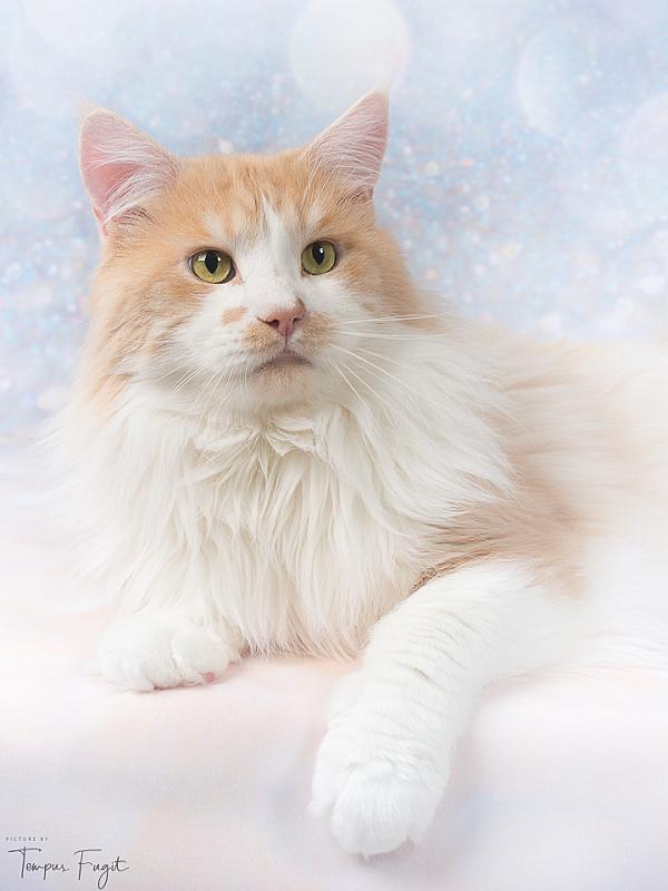 Deze kat heeft van zichzelf al een heel mooi creme (red silver) kleurtje, dus daar past een lichtgekleurde setting wel mooi bij.