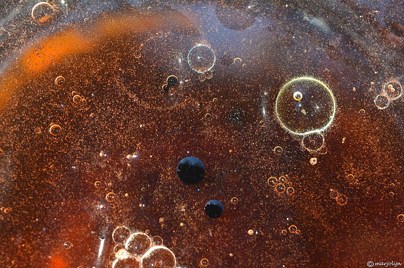 water, olie, levensmiddel kleurstof en een drupje afwasmiddel....