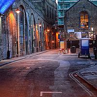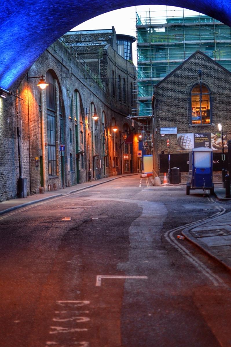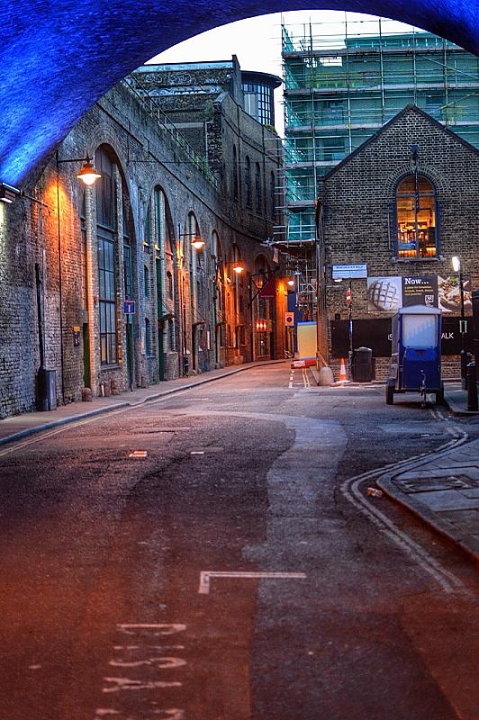 Een steegje in de schemering hartje london.