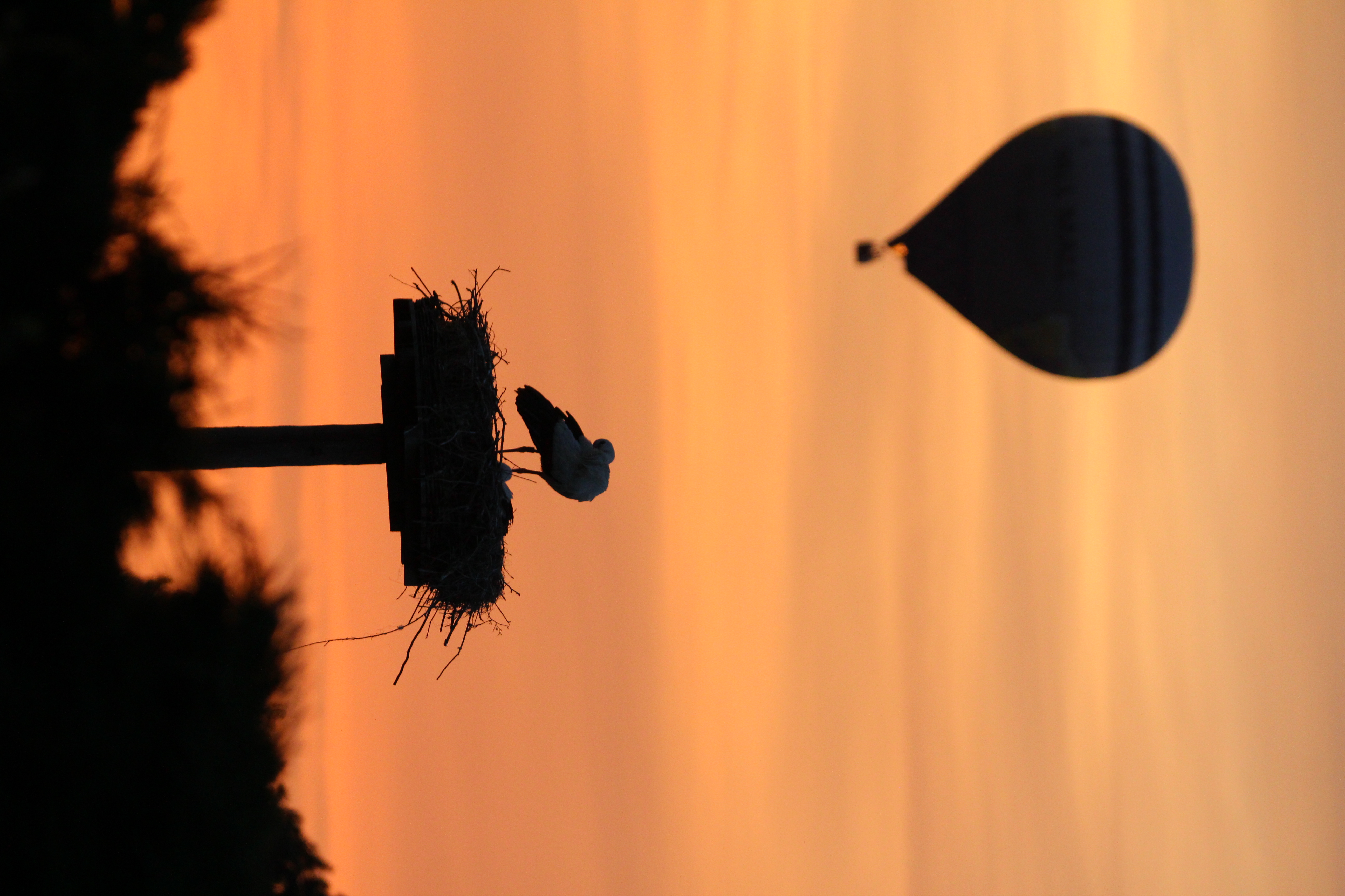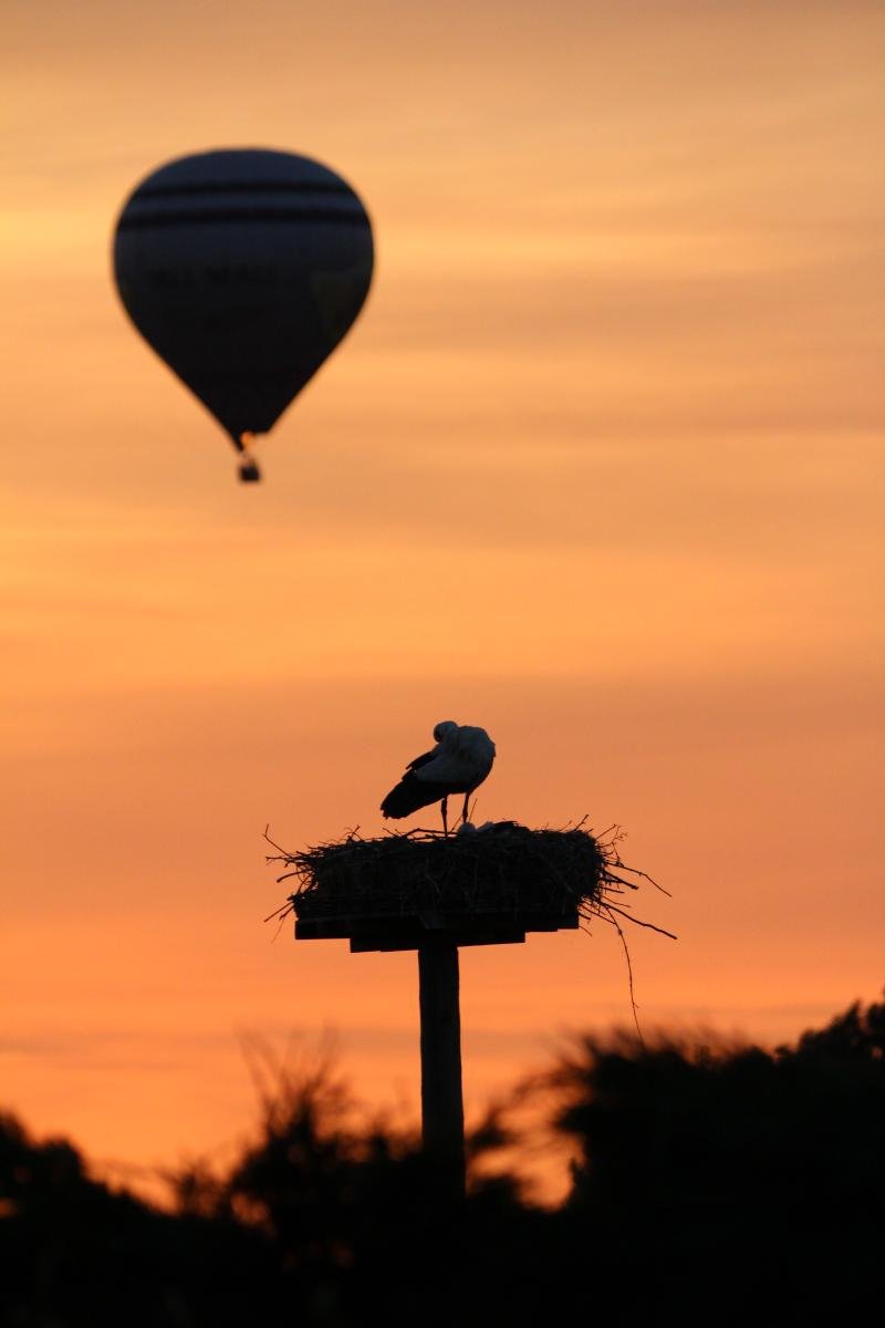Ik fotografeerde vier dagen lang tijdens de internationale hanzedagen in Kampen. Gelijk de eerste dag was er een prachtige zonsondergang. Ik stond toen bij de ooievaars op het nest, in de verte zag ik een luchtballon aankomen, ik besloot om een paar minuten te wachten zodat ie achterlangs vloog op de foto. Het mooiste vind ik zelf de relatie tussen mens & natuur op één foto.