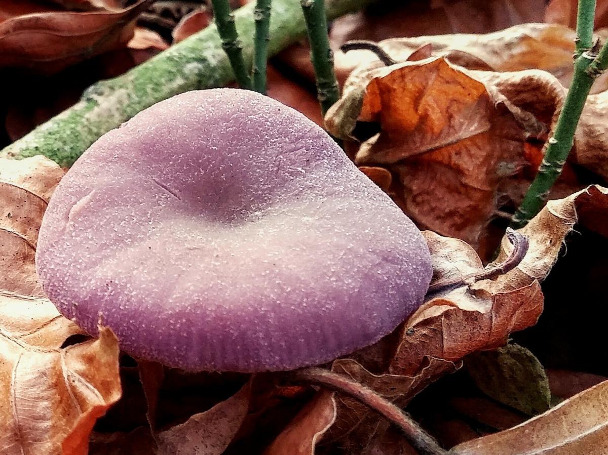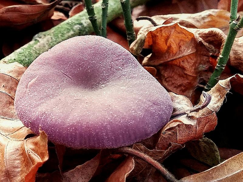 Vandaag lekker gewandeld wel koud maar zonnig en deze lichtpaarse paddenstoel met m'n smartphone op de foto gezet.