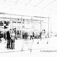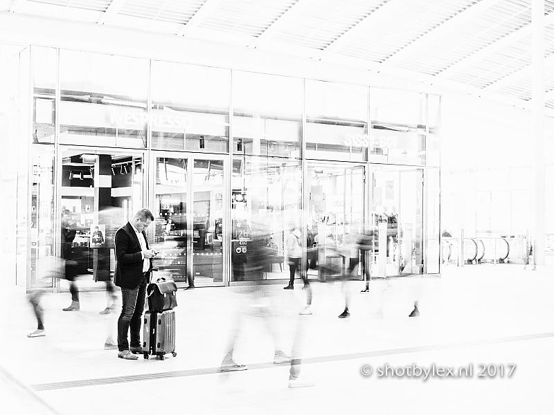 Als je een berichtje krijgt dat kennelijk heel belangrijk is, lijkt de tijd om je heen gewoon door te gaan... Experiment in lange sluitertijd en high key op het station van Den Haag