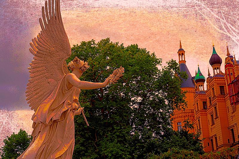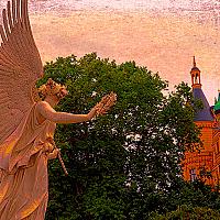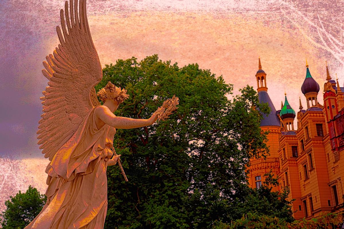 tuinbeeld bij Slot Schwerin in Schwerin in vm Oost Duitsland