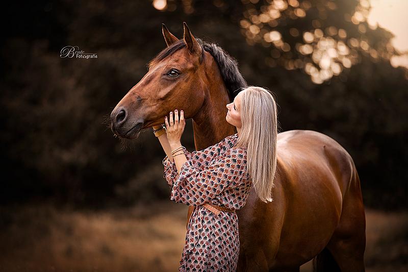 Anouk poseerde samen met haar paard Intro tijdens de zonsondergang <3