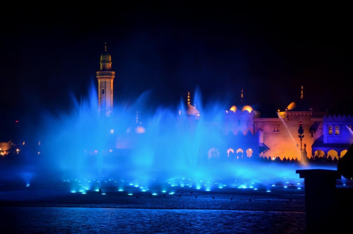 Een explosie van water bij de show 'Aquanura' in de Efteling.