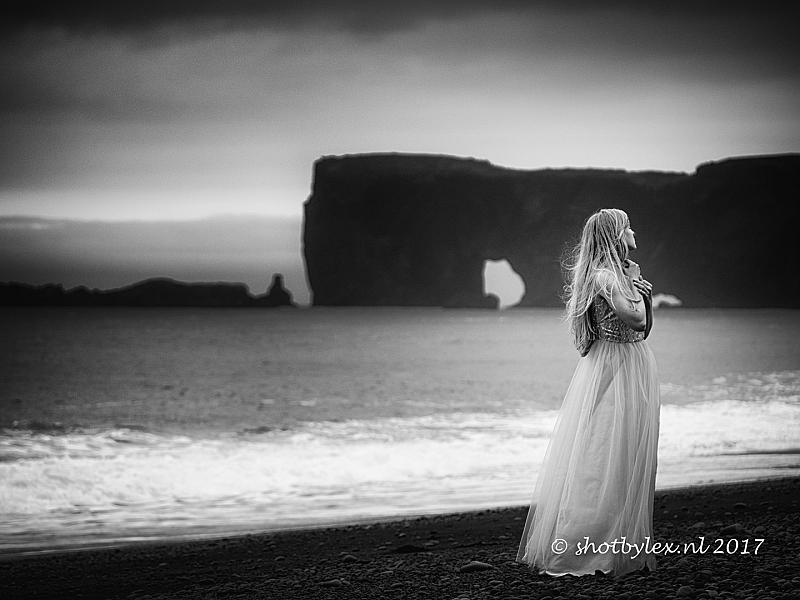 Reynisfjara, IJsland. Dit strand staat bekend om zijn gevaarlijke golven. Tevens is dit een veel genruikte filmlocatie. Zo ook deze dame. Dankzij het gebruik van een korte telelens kon ik haar mooi isoleren...