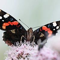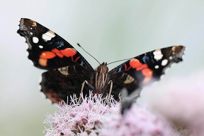 Een foto van de mooie Atalanta. Een dagvlinder die best moeilijk te fotograferen is. Al gauw is hij overbelicht met zijn prachtige zwarte vleugels.