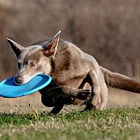Australian Kelpie Joy in actie met frisbee