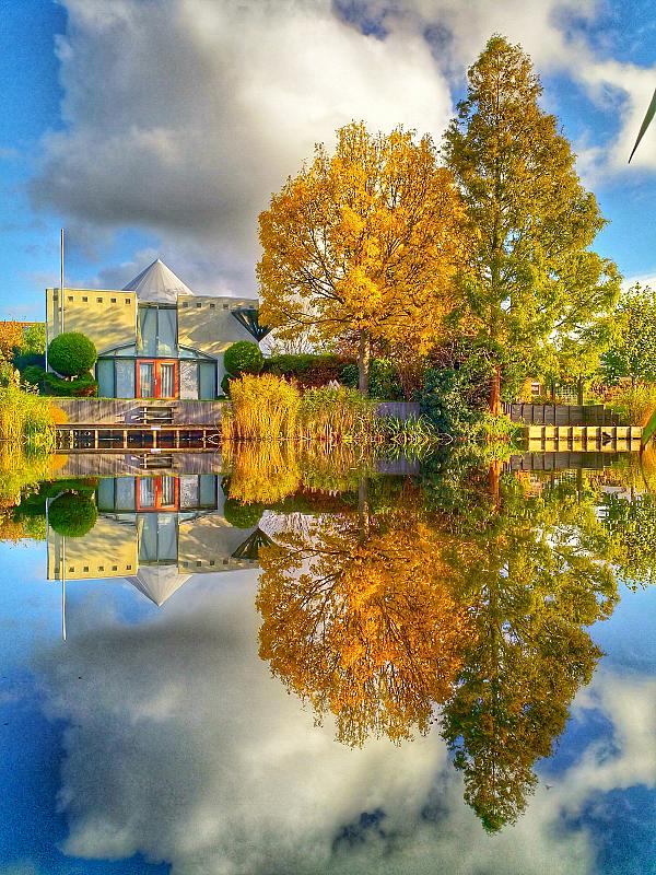 Reflectie van het gebouw van Avesz Art in Heerhugowaard.
