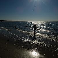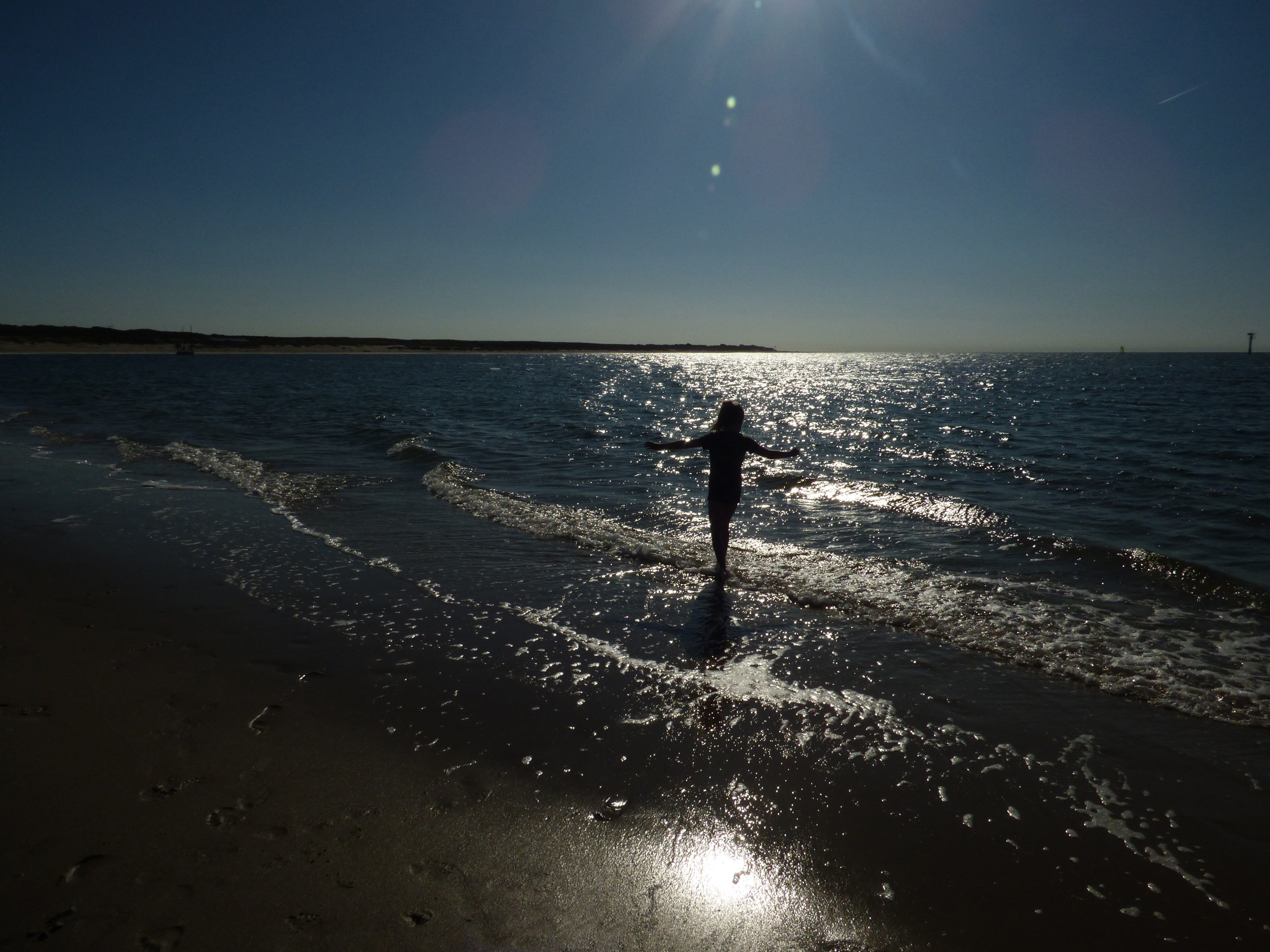 Deze foto heb ik genomen met laagstaande zon aan het begin van de avond op het Noordzeestrand aan de Brouwersdam bij Scharredijke in Zeeland. Het silhouet is van mijn dochter Benthe.