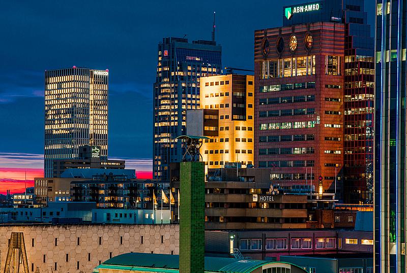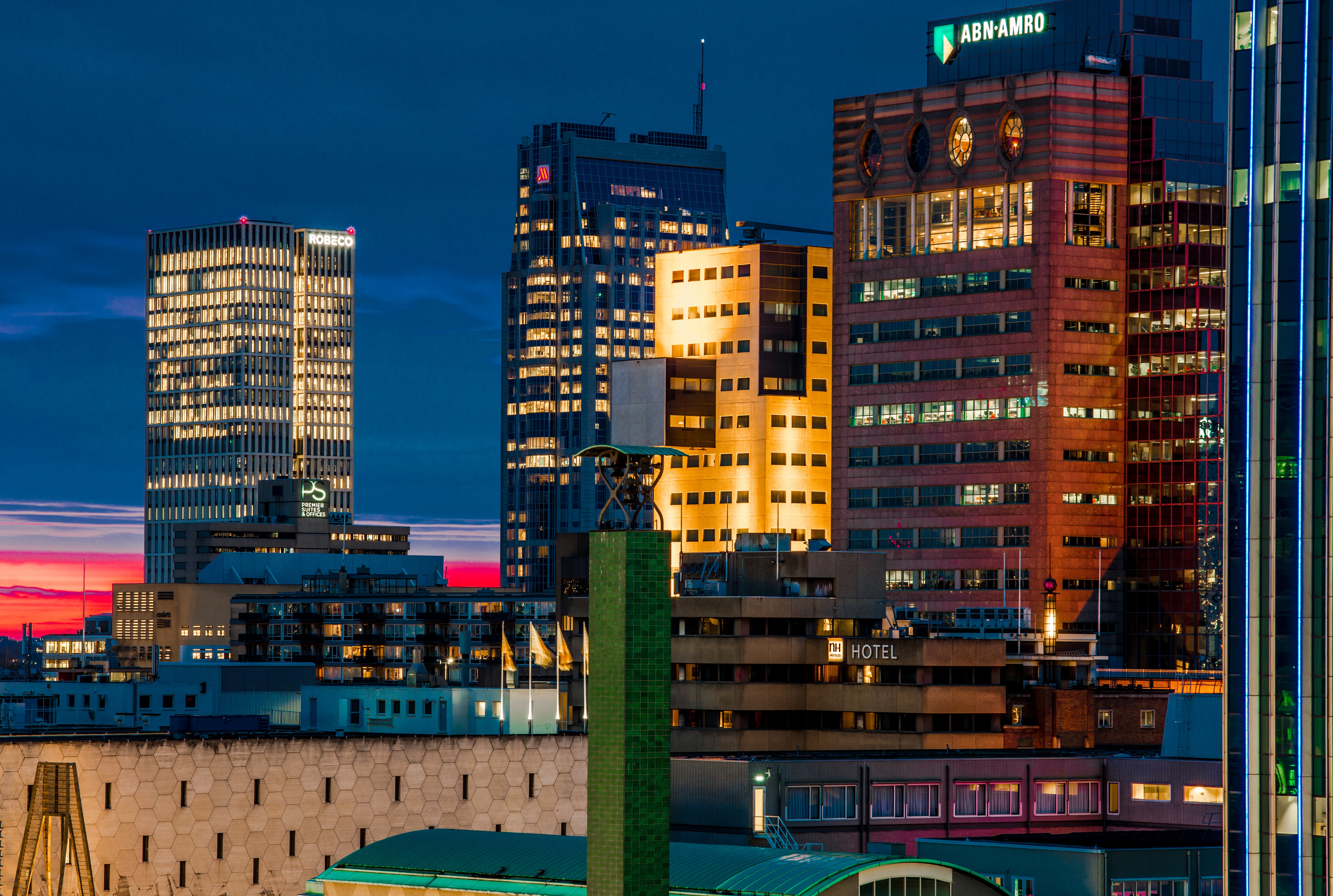 Tijdens het blauwe uurtje gemaakt vanuit het raam