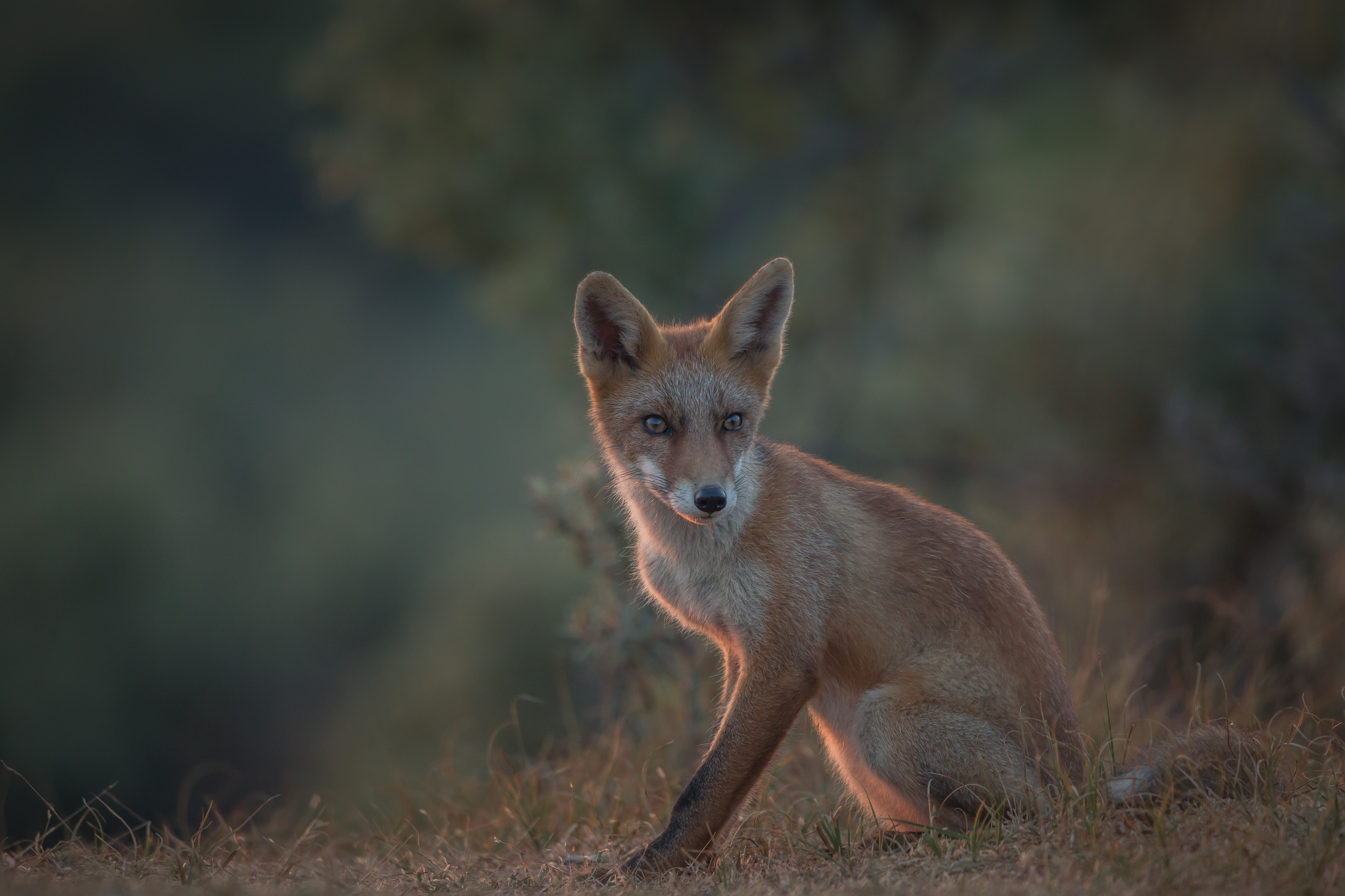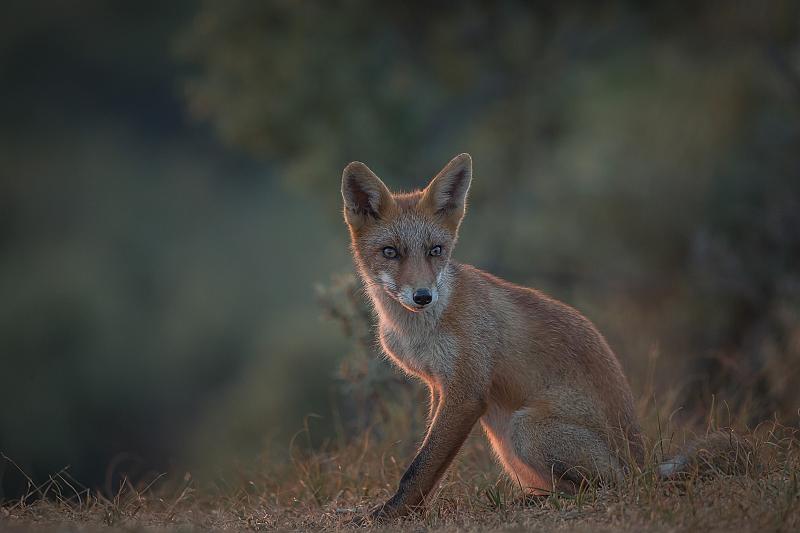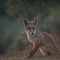 Jonge vos met de gloed van de ondergaande zon in zijn vacht