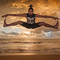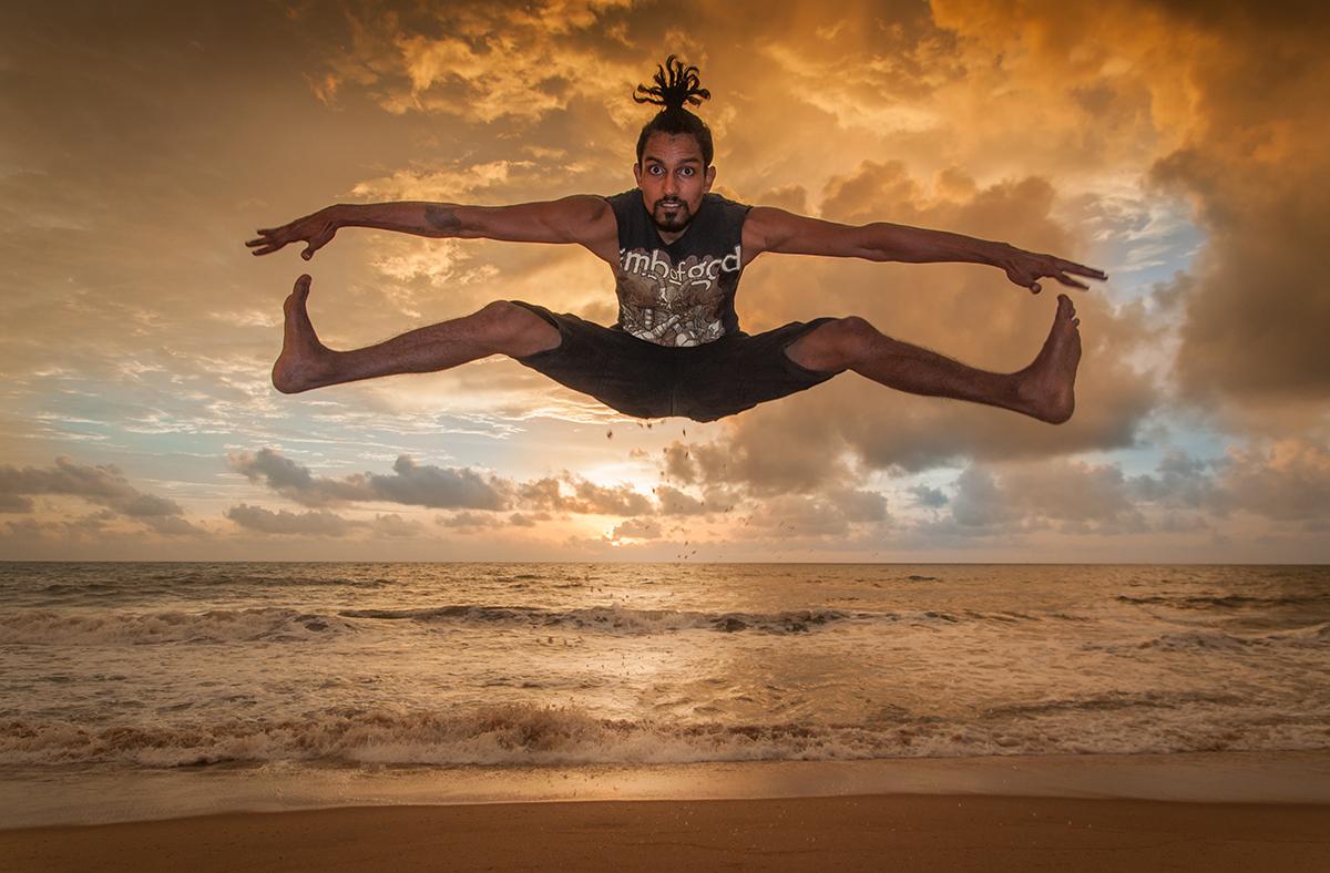 Bij het laatste licht vind ik het altijd fijn om op het strand te lopen, hier op Negombo beach kwam ik een Sri Lankaanse B-boy tegen die stoere acrobatiek liet zien op het mulle zand, respect en bedankt het voor de foto nog eens te doen.