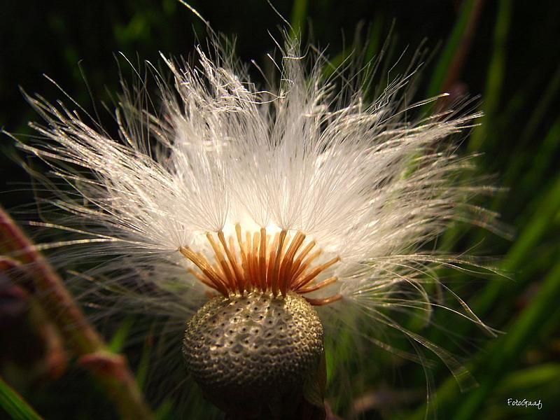 Een opname van een uitgebloeide pluizebol, ik denk zelf een distel. Ik vind het vooral een grappige associatie naar een flinke haardos die in war is!