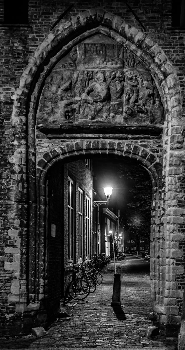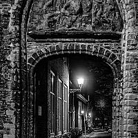 Poort naar begijnhof in Delft. met re o de hoek een erg goed restaurant.