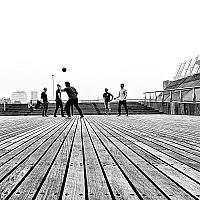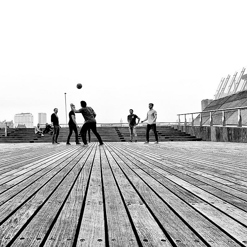 De mannen trappen na de lunch even een balletje, de dames kijken toe en wachten op een 'Coca-Cola momentje'