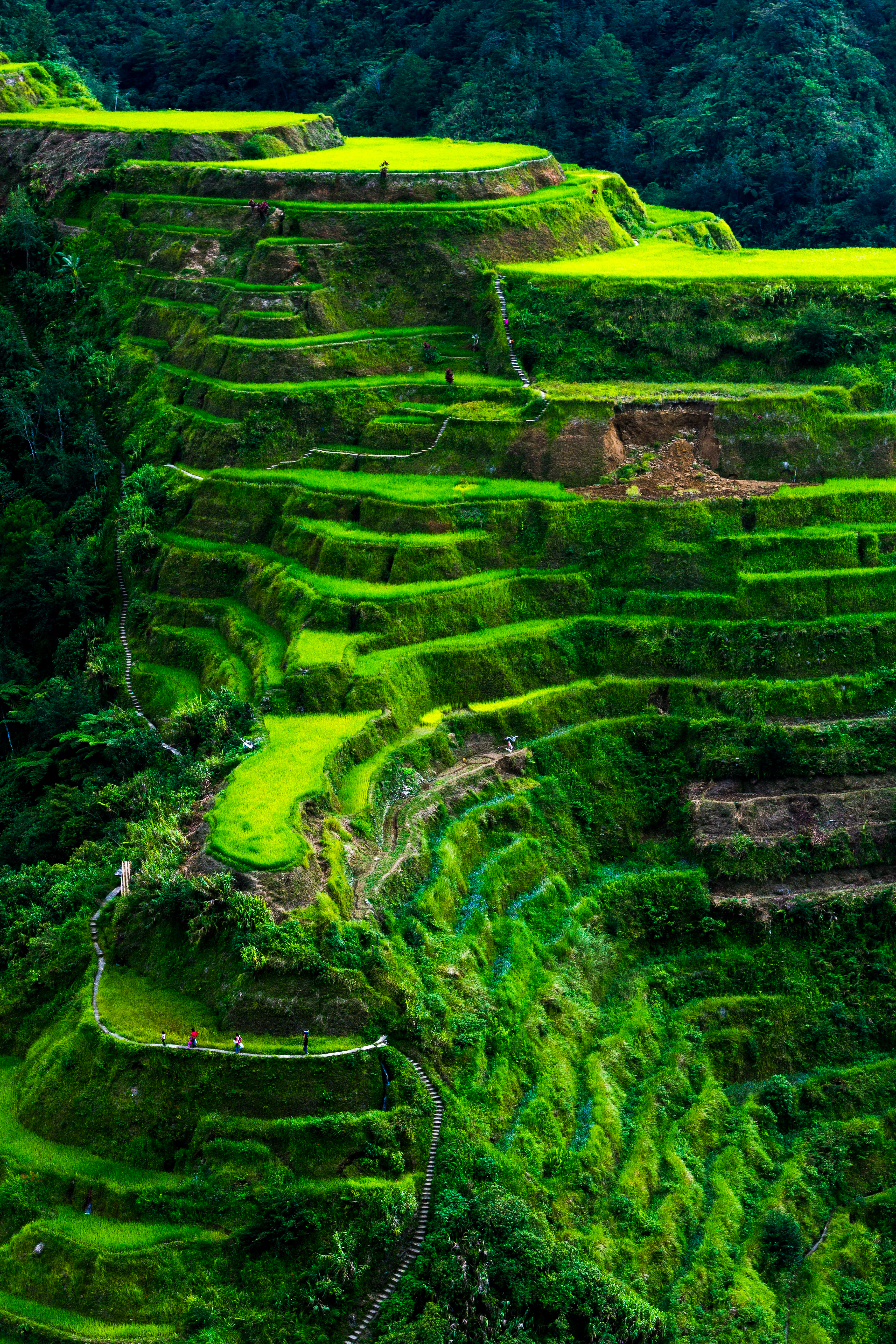 Nog nooit zoveel tinten groen bij elkaar gezien op onze (redelijk-uitputtende-maar-met-waterval-als-beloning-) tocht door de Banaue-rijstterrassen!