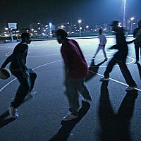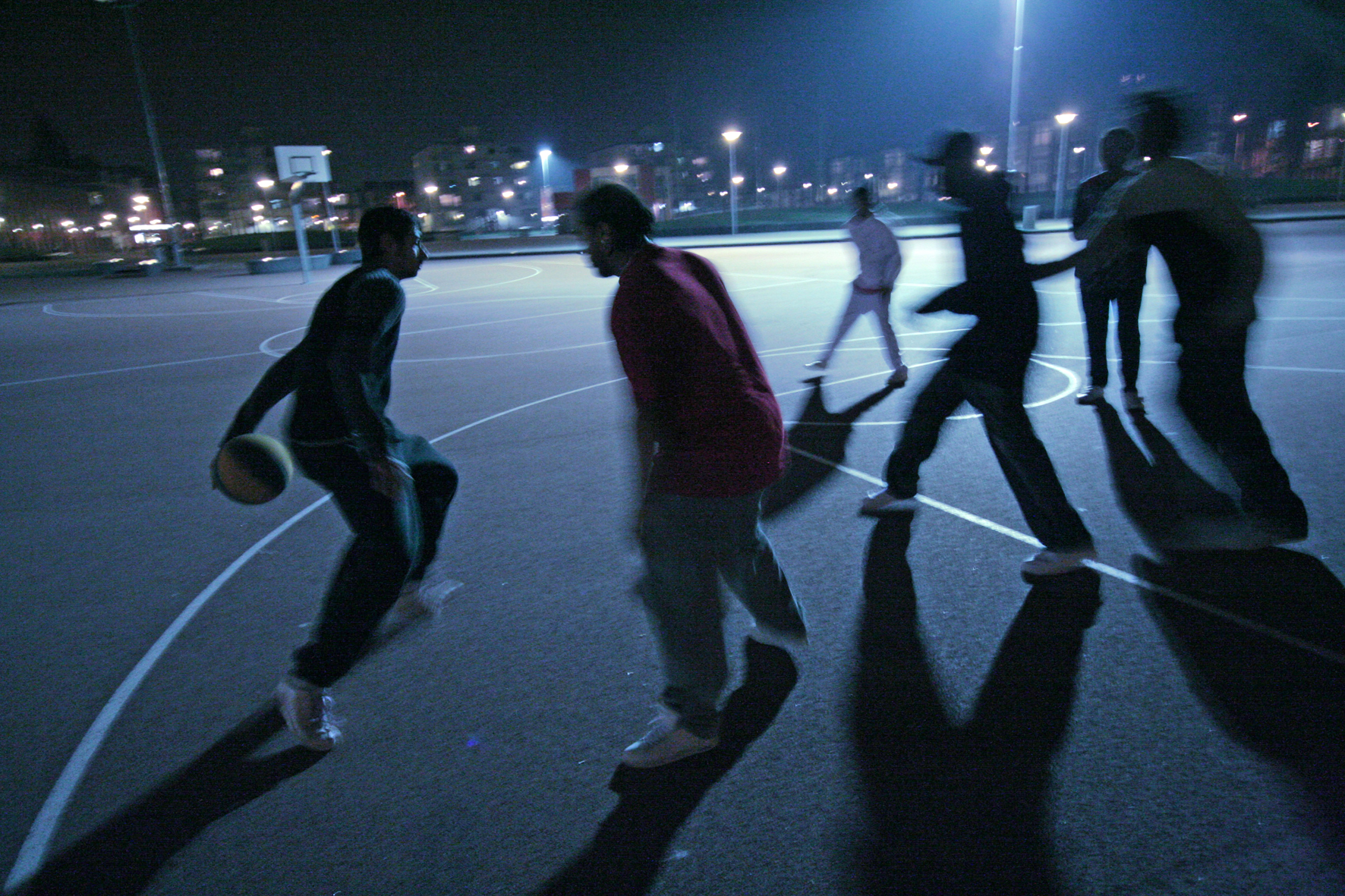 Naast de Scheepersstraat in Den Haag ligt een klein park waar het altijd druk is met scholieren en bezoekers van de lokale haagse markt die er bijna aan grenst. Zelfs in de nacht kwam ik deze jongens tegen waarna ik na een kort gesprek mij mocht mengen in hun team om zo deze foto te maken.