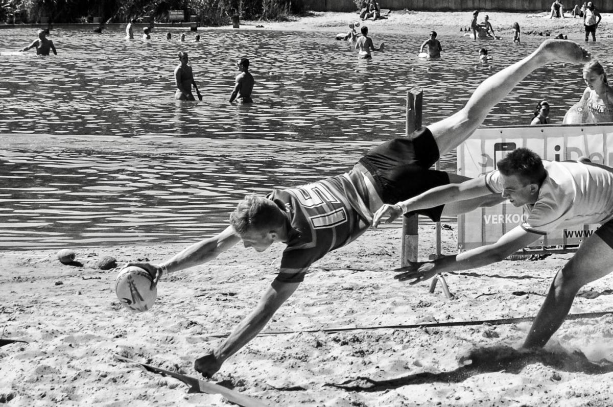 Beachrugby aan de waterlijn