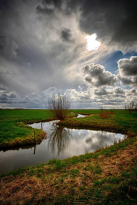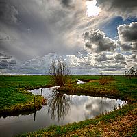Voor het maken van een landschapsfoto hoef je niet altijd ver weg, hier bij Castricum, paar straatjes verderop., een mooi slingerend beekje met een prachtige "wolkenlucht".