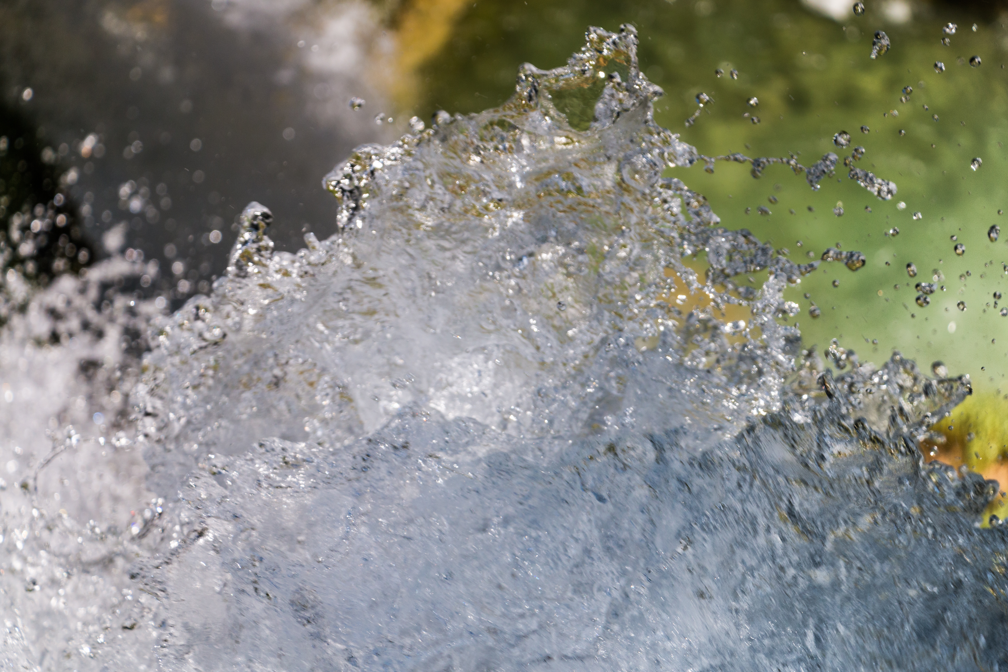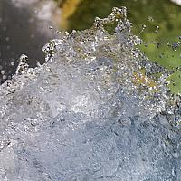 De bovenkant van één van de waterval van de Plitvice meren (Kroatië). Het water spat tegen een rots op in druppeltjes om daarna met de waterval mee naar beneden te vallen.