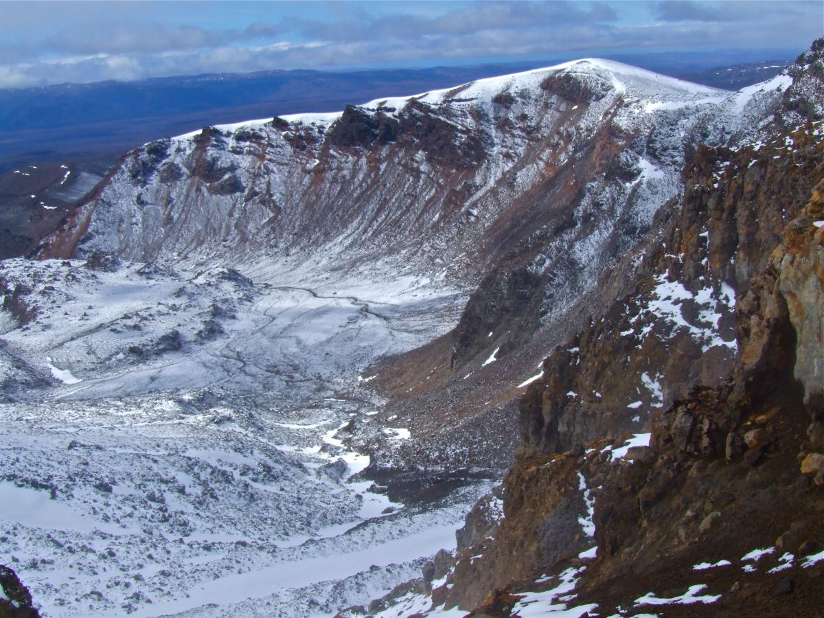 Eerste sneeuwval doet de Tongariro Crossing veranderen in een wintersprookje.