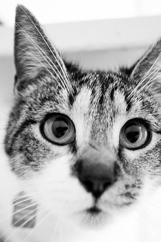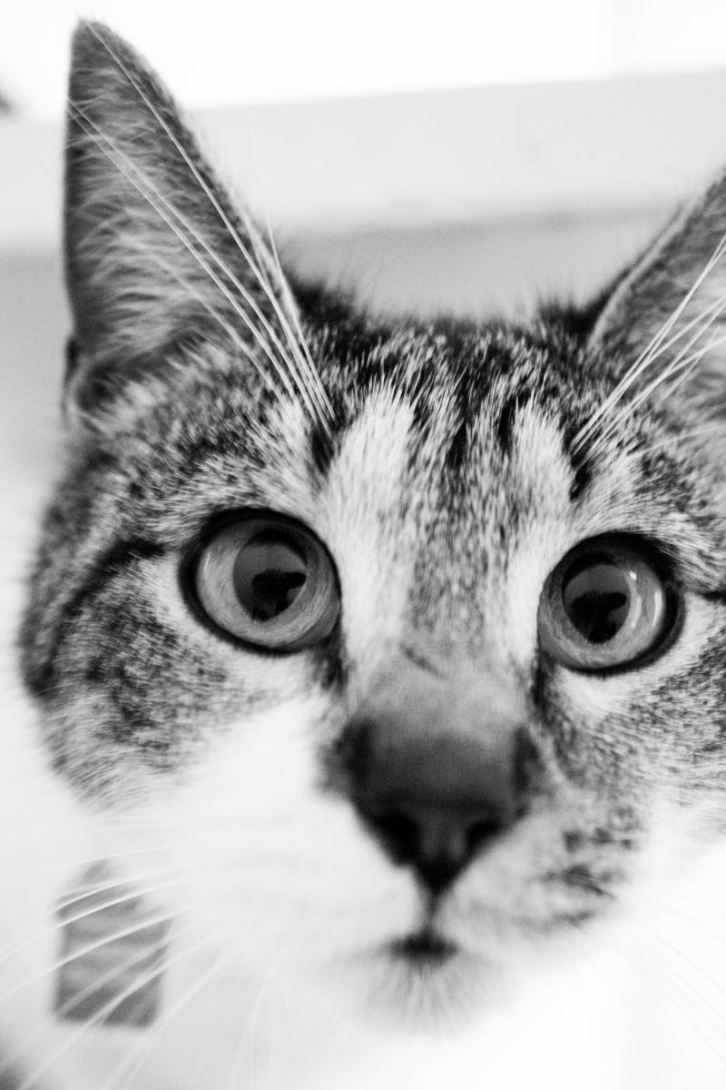 Een mooie foto van onze poes Belle die goed weergeeft hoe nieuwsgierig ze is