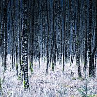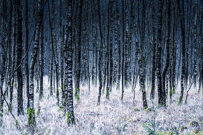 De eenvoud van de rechte stammen en het verdroogde gras in combinatie met het groene mos onderaan vond ik erg mooi. Door de foto op deze manier te bewerken werd het " winterse" benadrukt.
