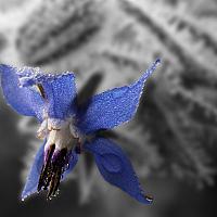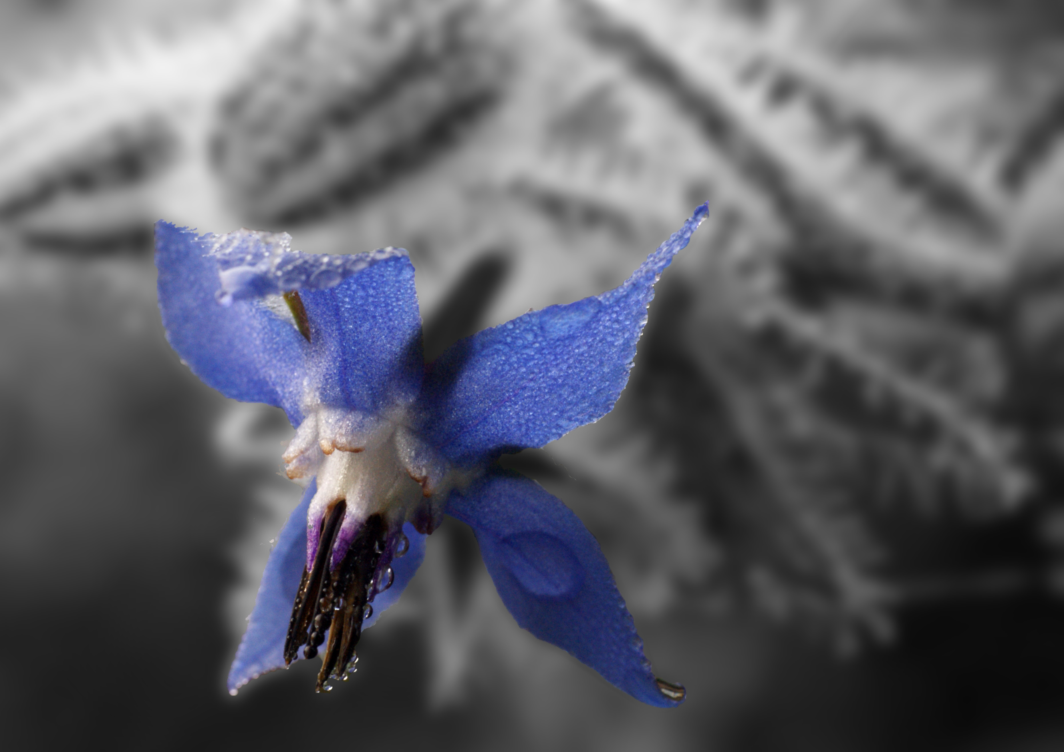 De minuscule dauwdruppeltjes doen de rest. Macrolens, statief, 1/10de seconde bij f 16.