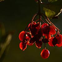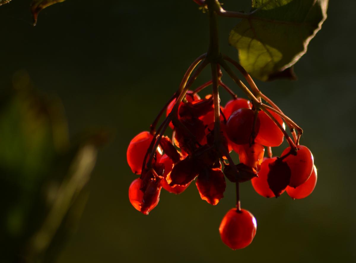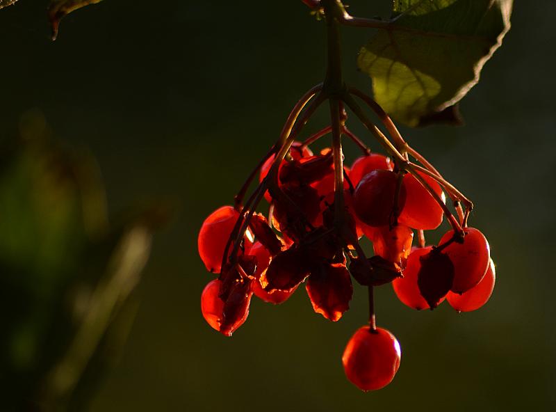 Trosje besjes van de Gelderse Roos in de herfst avondzon.