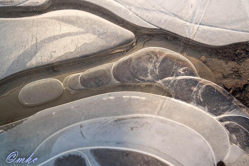 Vanmorgen tijdens mijn dagelijkse rondje zag ik dit bevroren plasje water langs de kant van de weg. De textuur, kleuren en schaduwen fascineerde me om een foto van te maken. Thuis op de computer zag het er nog mooier uit. Wat is de natuur elke keer weer geweldig.