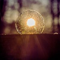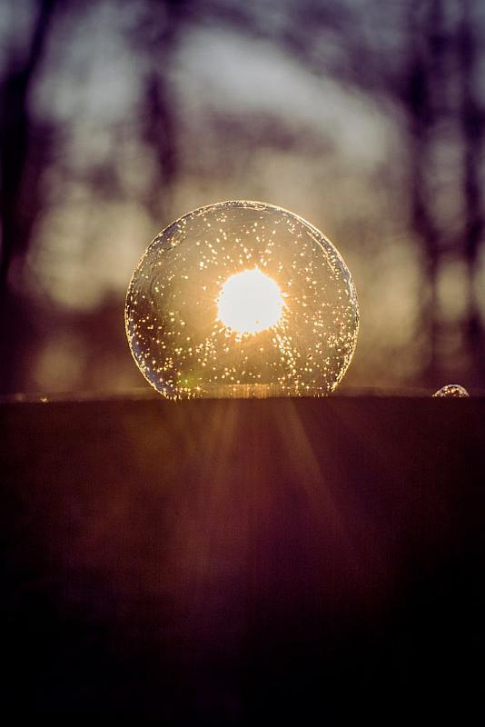 De kou met zonsopkomst doet zeepbellen bevriezen. Zonder water geen bevriezing.