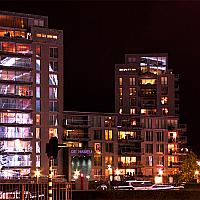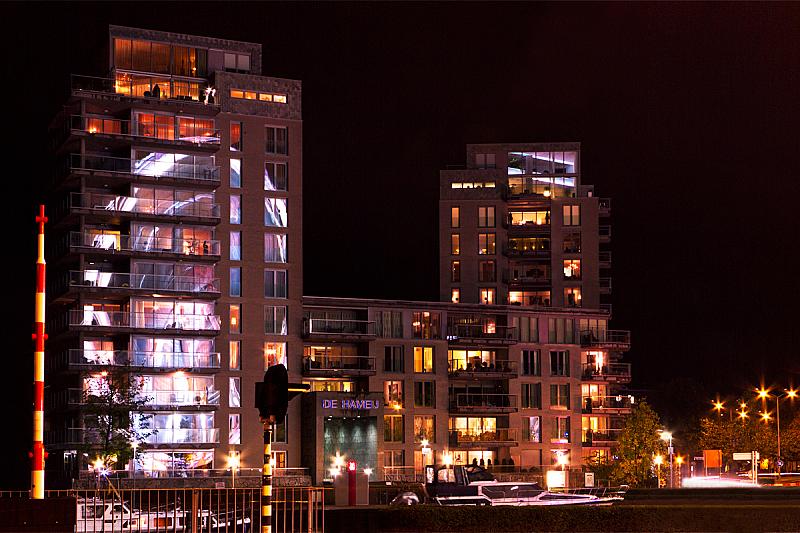 In dit gebouw kwam er een mooie reflectie van het reuzenrad van de kermis.