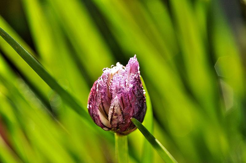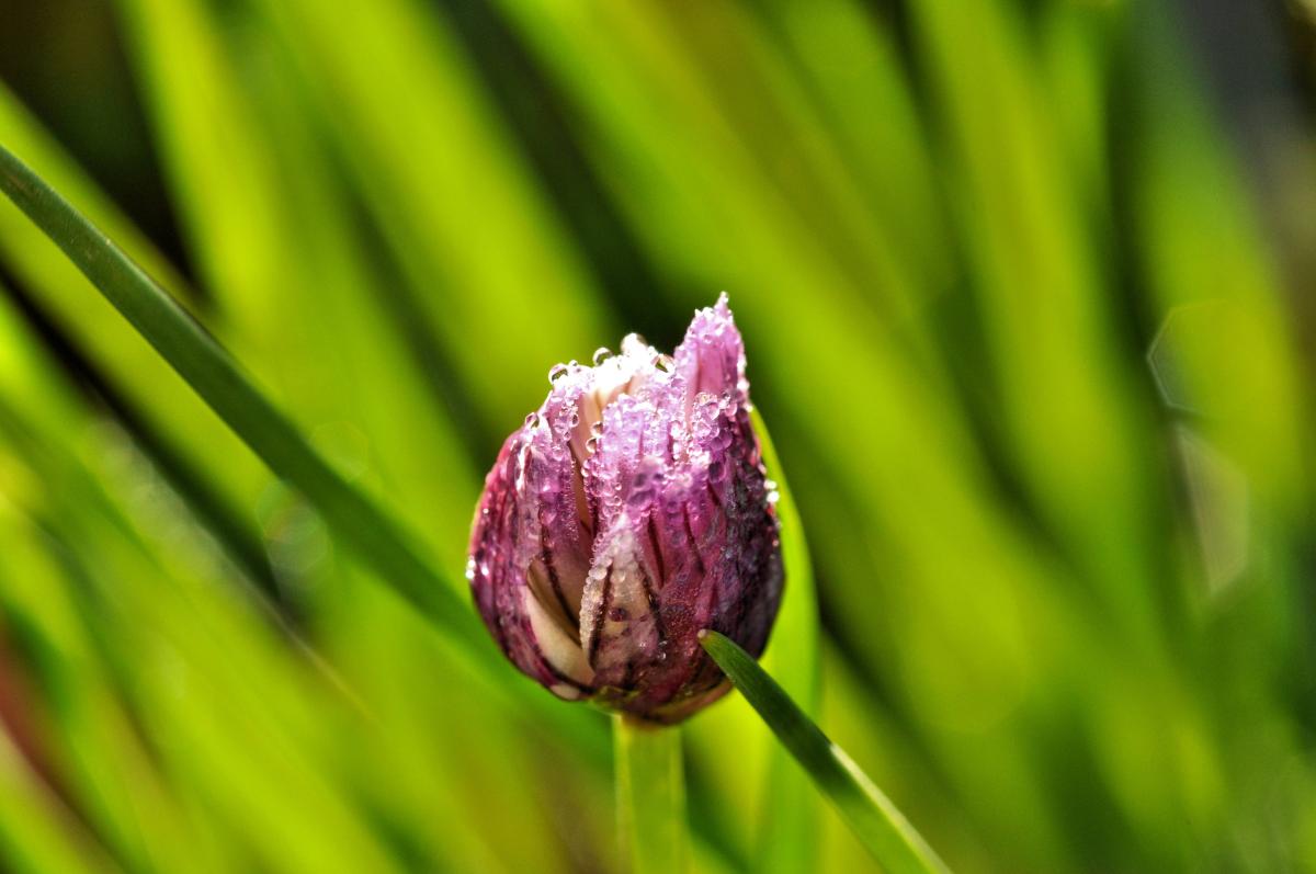 Bieslook bloemetje in de ochtendzon.