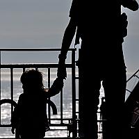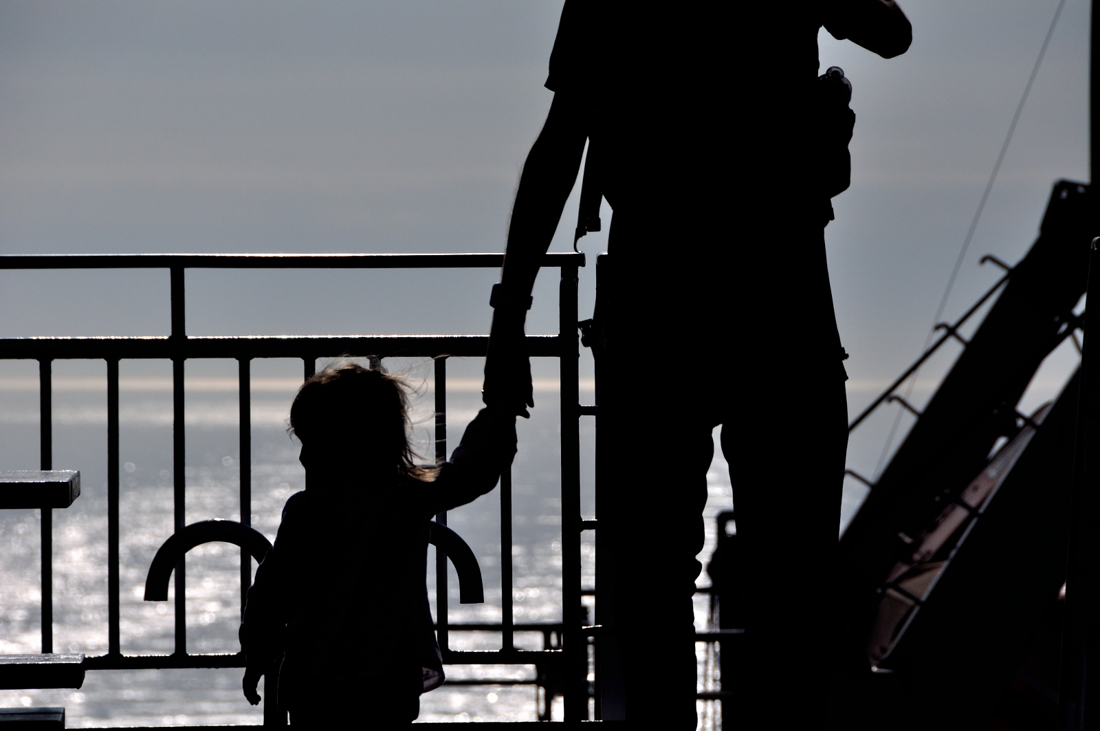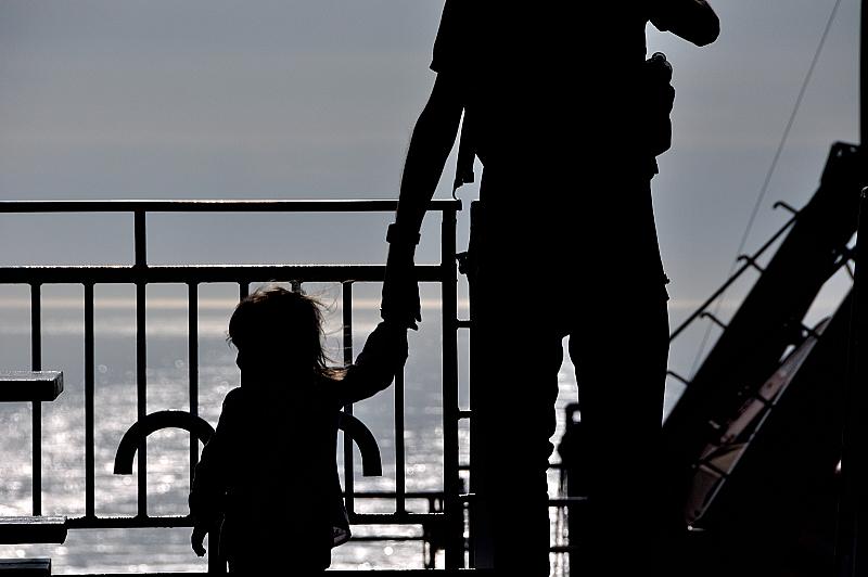 Klein meisje neemt eens een kijkje in de grote boze mensenwereld, maar houd voor de zekerheid pappa's hand toch maar stevig vast.
