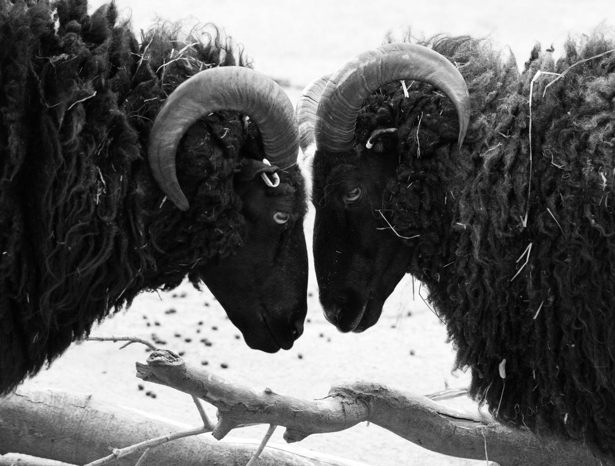 Schitterende zwarte schapen die zich tegenover elkaar willen ' bewijzen'