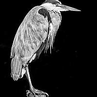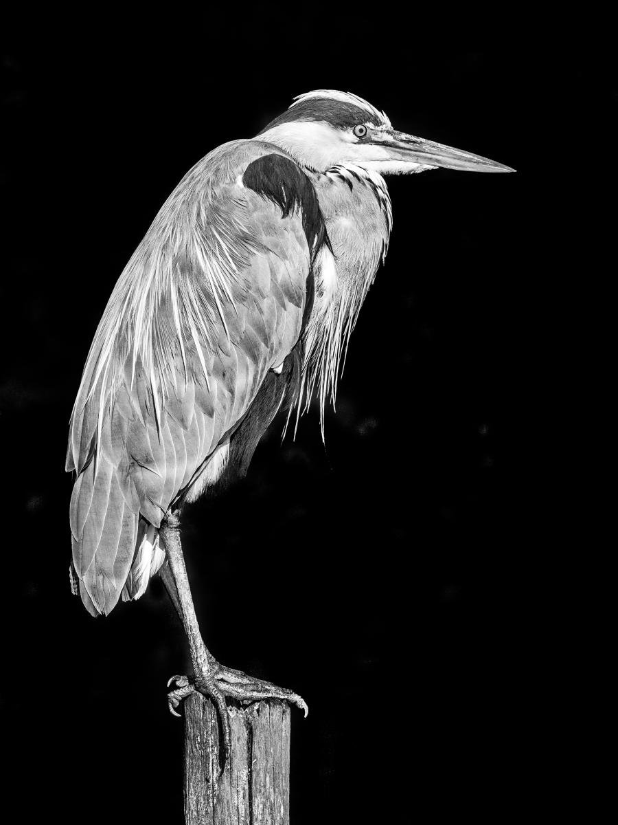 Ook van veelvoorkomende vogels kan je mooie foto's maken. Dankzij het omzetten naar zwart-wit en het verhogen van het contrast wordt deze 'gewone' reiger superinteressant om te fotograferen.